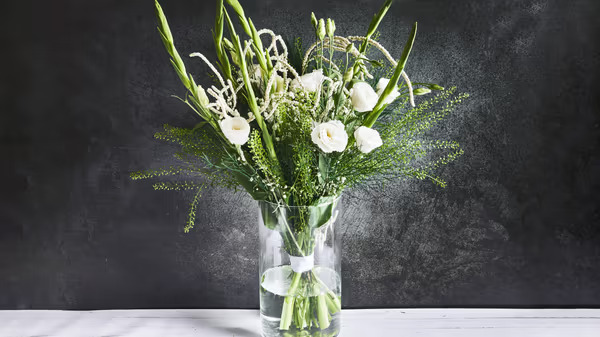 זר סייפנים בתוספת גיבסנית לבנה ועלי שרך שמשדרג כל הזדמנות.